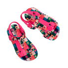 Experience unmatched fun and fashion with the Mini Melissa Playtime + Fabula - the sport sandal (papete) you never knew your mini desperately needed! The silhouette and has treaded soles and velcro straps with M logos. The insoles feature a unique, colorful print that is the perfect extra detail for a sunny day.