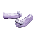 Dress your baby girl to the nines with the Mini Melissa Sweet Love IV! The maxi bow on the vamp adds a romantic twist and a delicate touch to the ballerina. Only the top of the foot is left exposed, and an extra strap with a buckle ensures a snug fit and extreme stability for your mini. The insole is notably comfortable and the color palette is to die for!
