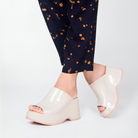 Throwback style meets current trends—that’s just how the Patty rolls. Lightweight and streamlined with a wide strap and a peep toe, these platform mules are true attention seekers, and the contrasting sole detail amps up the cool factor. Made from our revolutionary Melflex® PVC plastic, you enjoy more flexibility and comfort. Plus, they’re 100% recyclable.