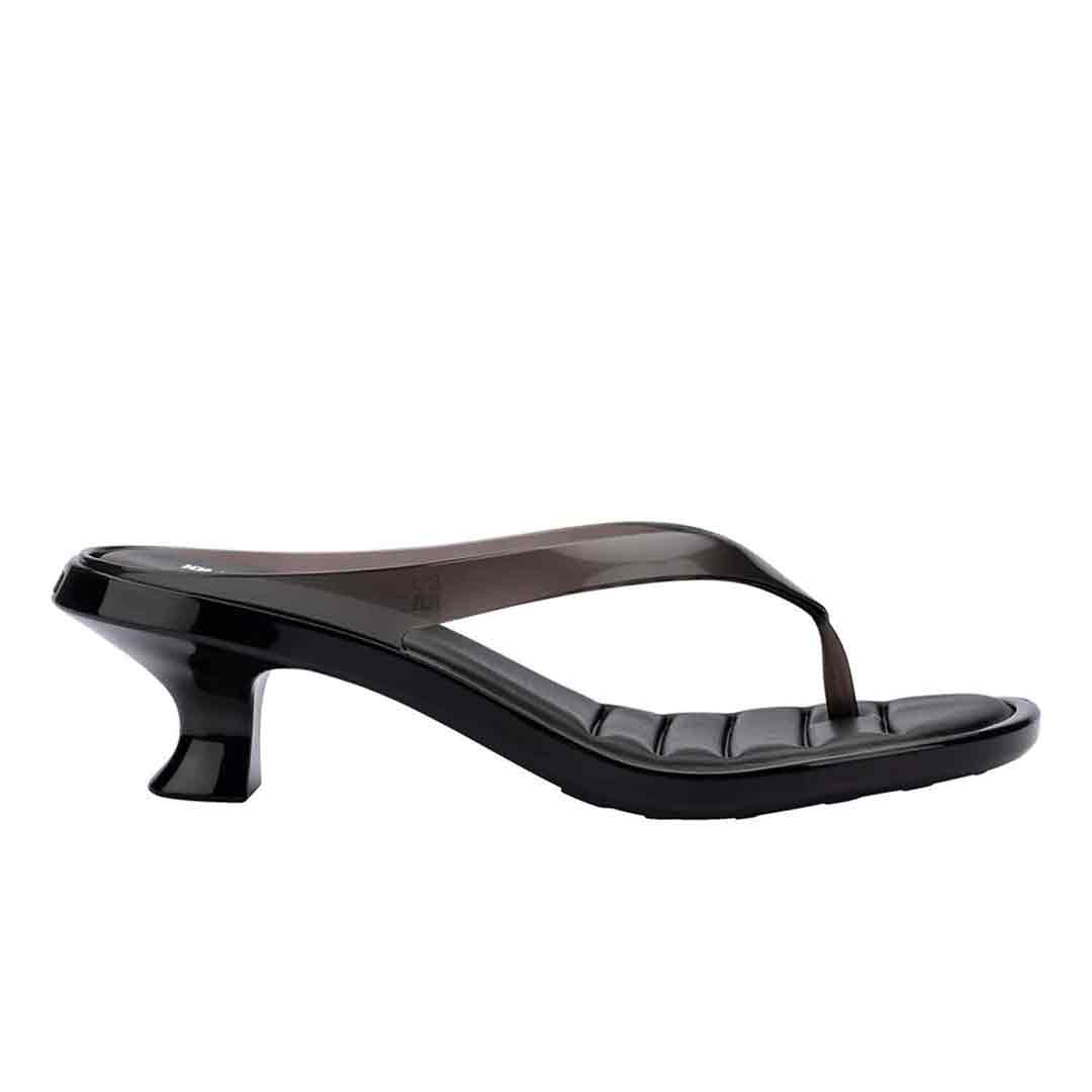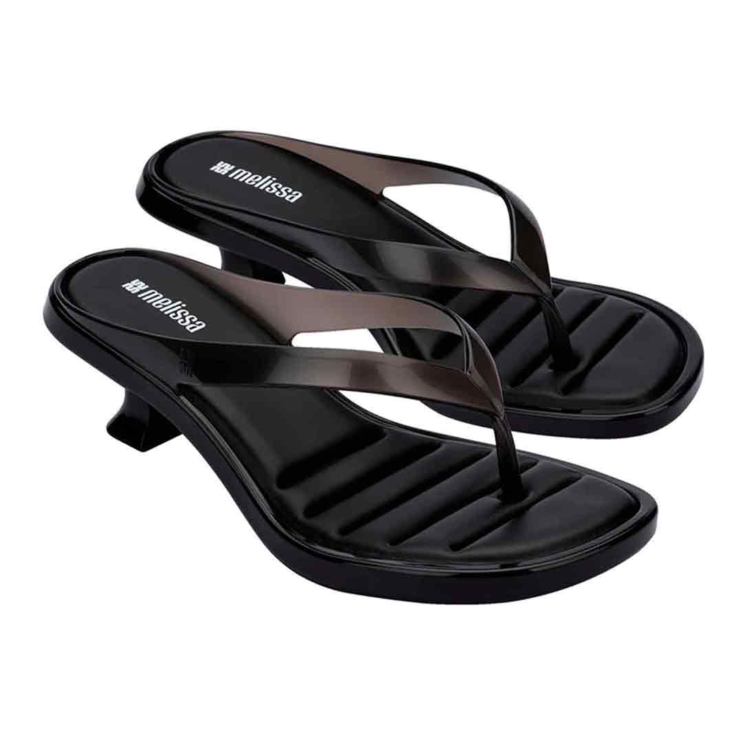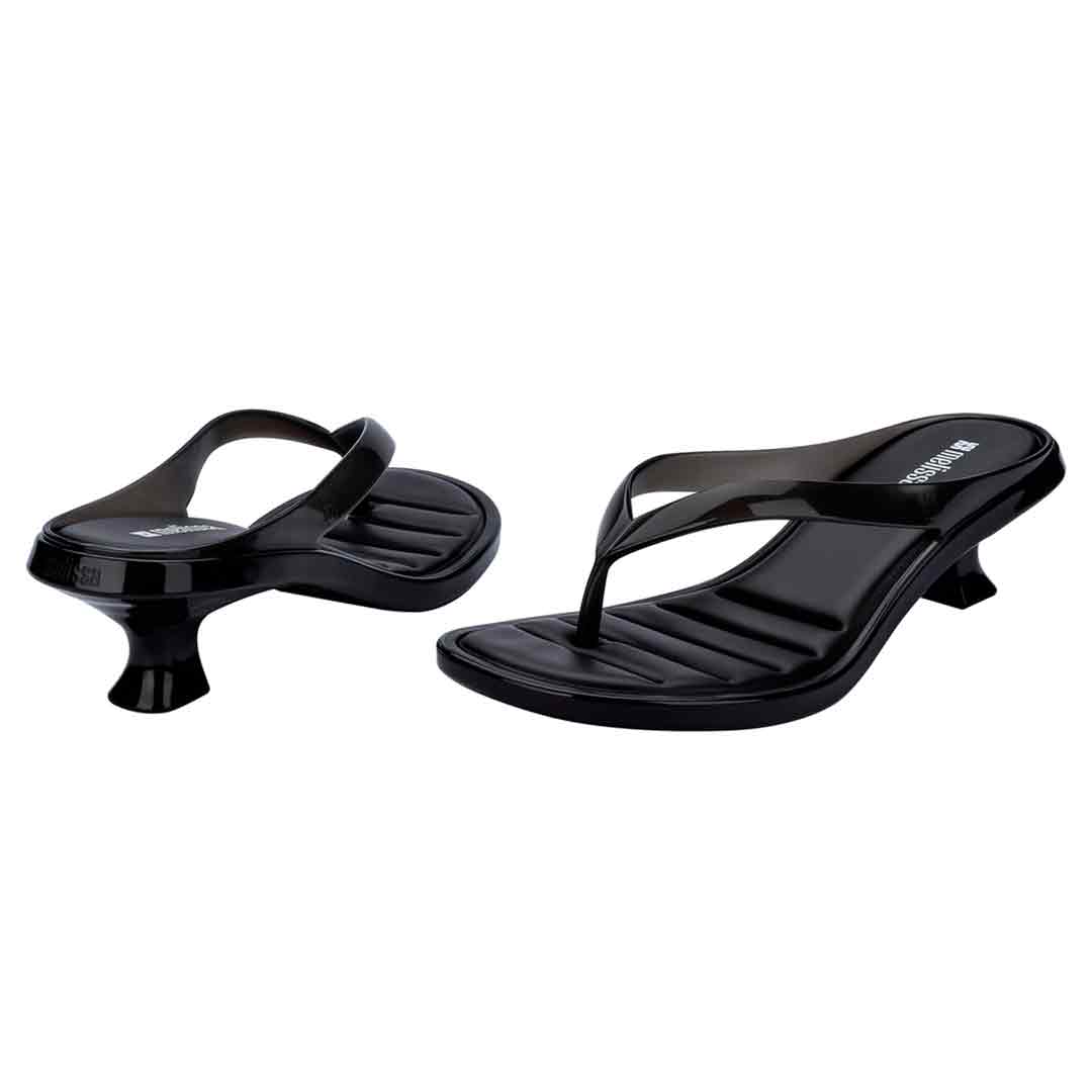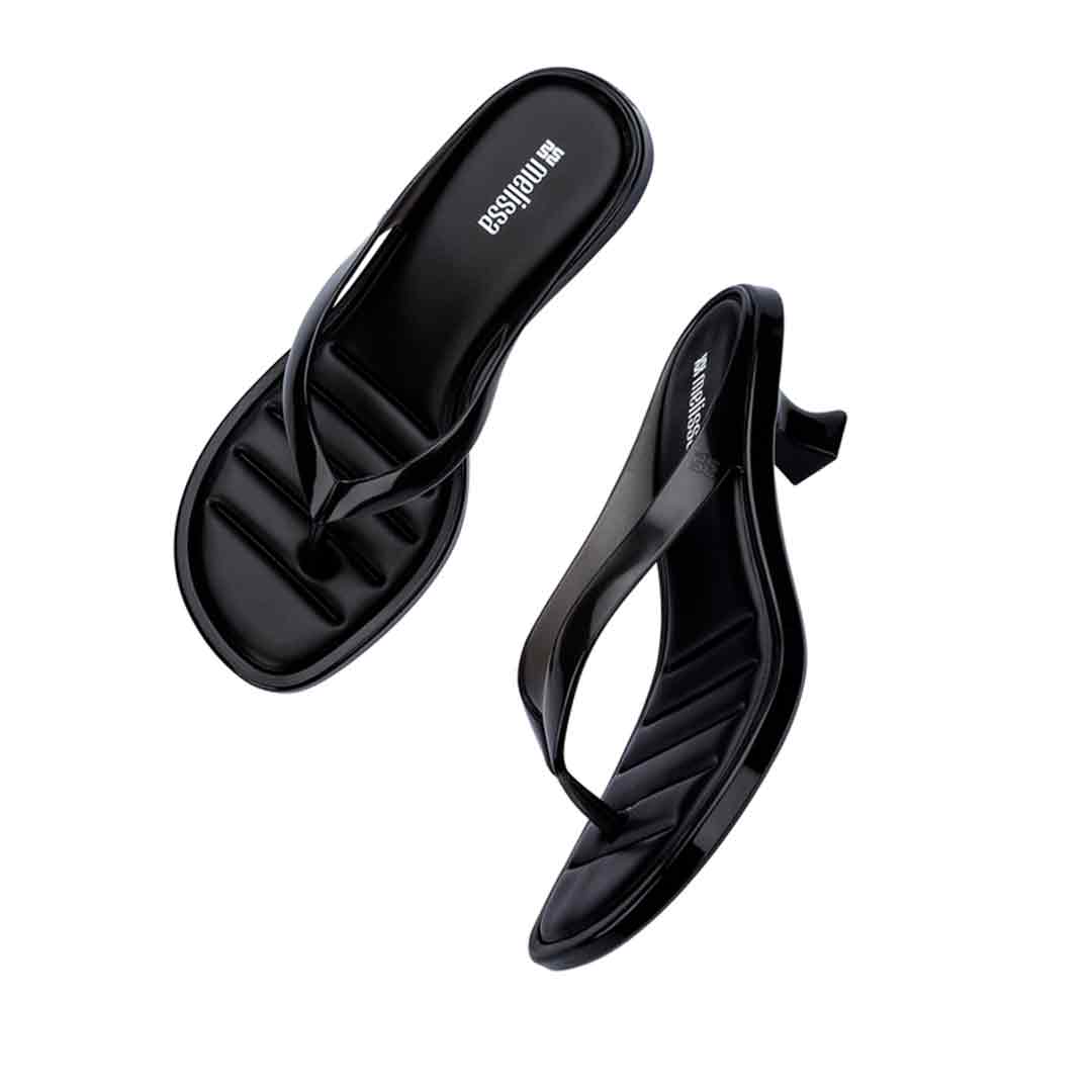 The Melissa Thong Kitten Heel brings to life one of today's top trends: kitten heels, making a comeback on runways and streets as a symbol of practical and elegant femininity. Featuring thin flip-flop-style straps and a low curved heel, the design embraces a refreshed nostalgic look. Melissa's signature jelly finish takes on a sophisticated twist with transparency and a soft shine, enhancing the models fashion-forward and versatile appeal perfect for effortlessly transitioning from day to night.